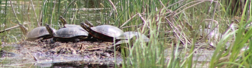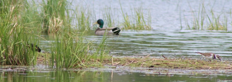 Painted turtles came out of the water onto a couple of logs nearby, birds came closer but were wary of my slow movements, a butterfly landed at my feet, A nesting duck couple came back while a killdeer and a blackbird scurried about them.
